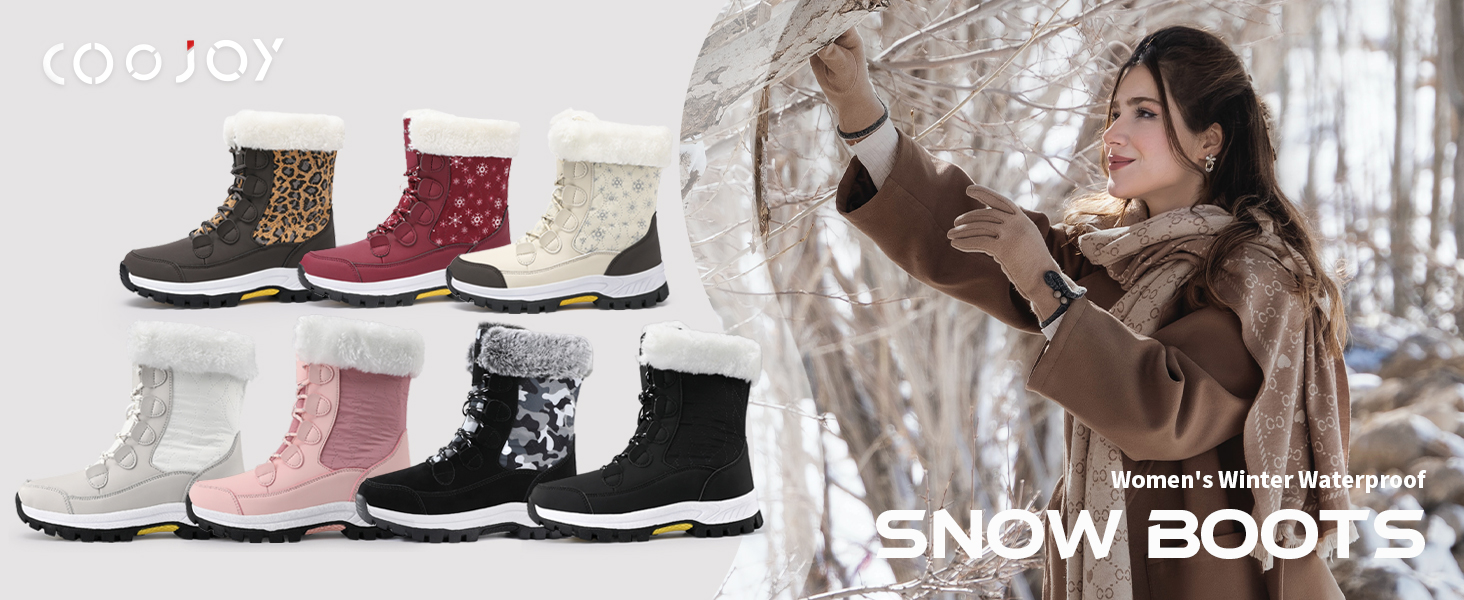 COOJOY Womens Winter Snow Boots Waterproof Shoes Walking Comfortable Hiking Tennis Booties Furry Mid Calf Warm Lightweight