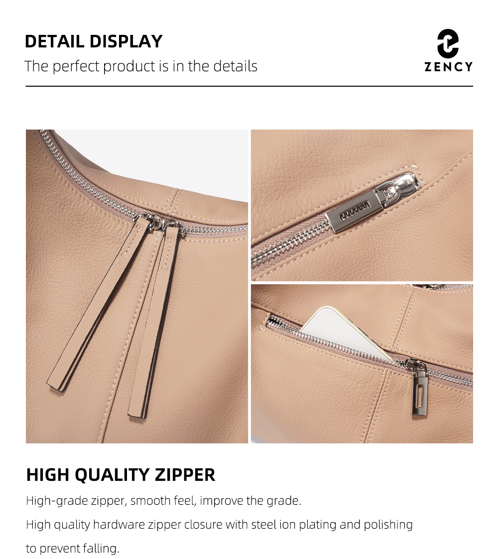 Zency Large Capacity Tote Bag Genuine Leather Hobo Bag Women Handbag Shoulder Purse For Shopper Work For Winter Bag for Mom Wife