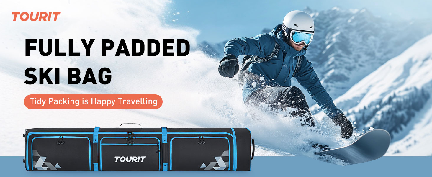 TOURIT Ski Bag with Wheels, Padded Snowboard Bag for Air Travel, Extendable from 170-185CM, 3 Outside Bags Fit ski boots, helmets, goggles arrived quickly and looks great!