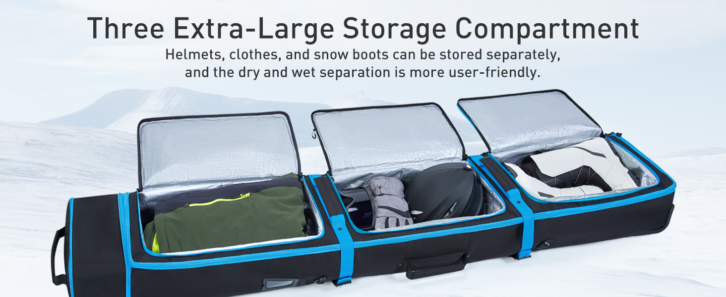 TOURIT Ski Bag with Wheels, Padded Snowboard Bag for Air Travel, Extendable from 170-185CM, 3 Outside Bags Fit ski boots, helmets, goggles