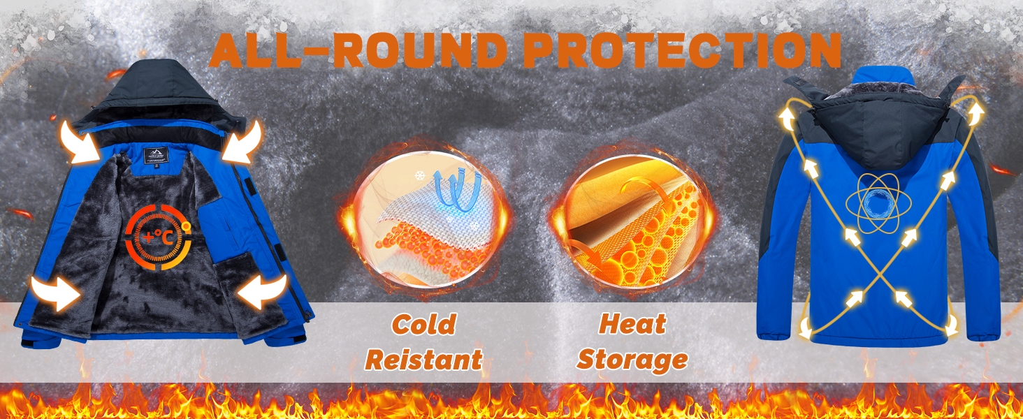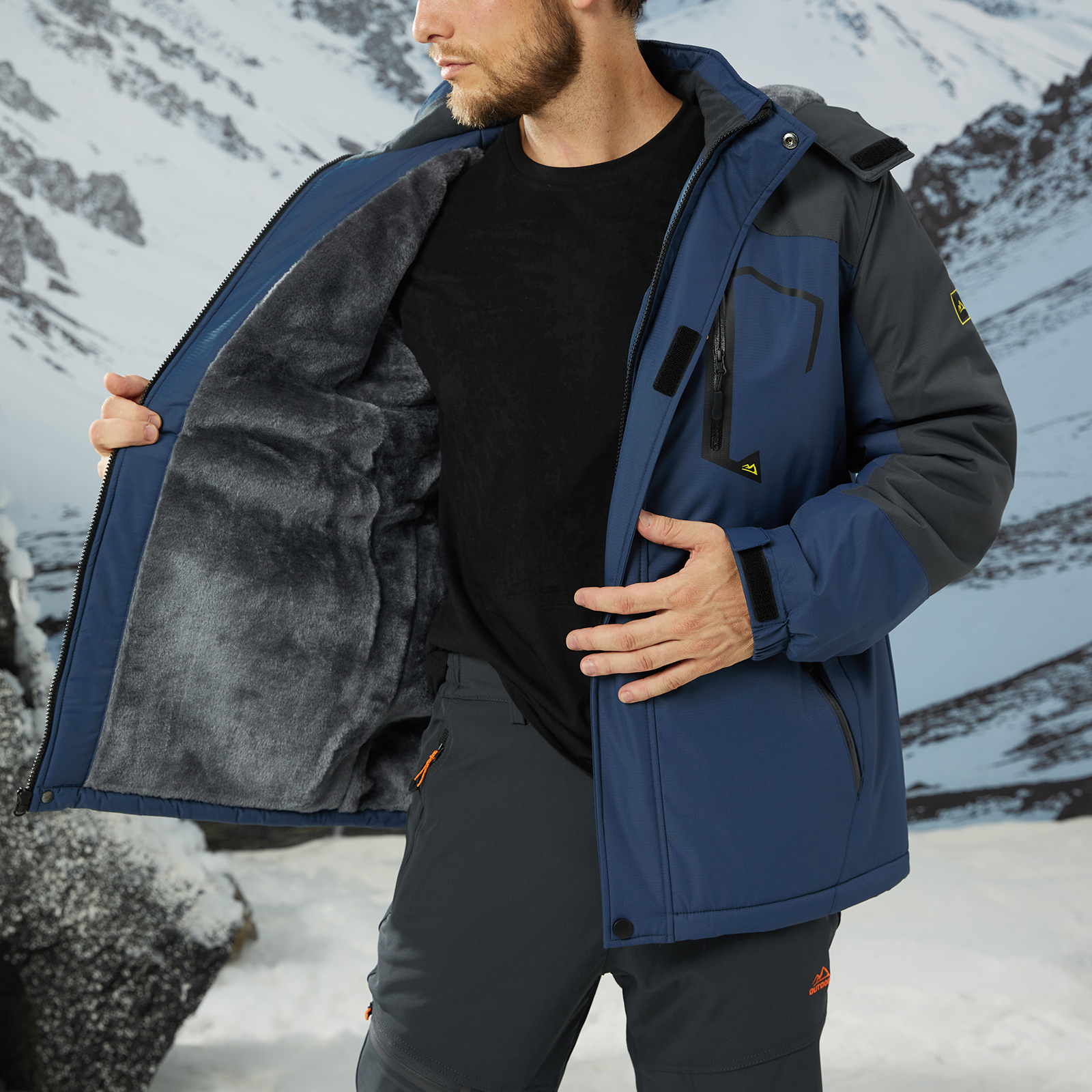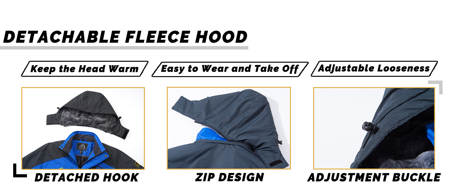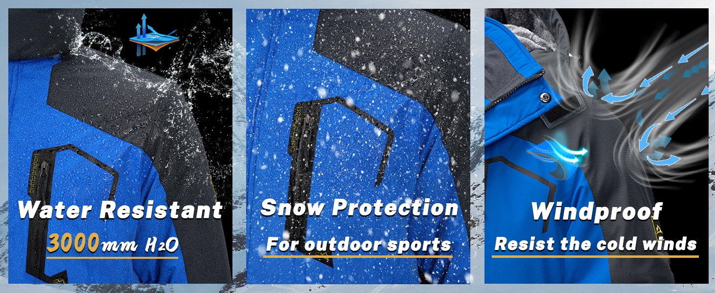 KEFITEVD Men's Winter Ski Jacket Waterproof Warm Thick Fleece Hiking Jackets Raincoats Snow Jacket Coats Windbreaker Man Parka