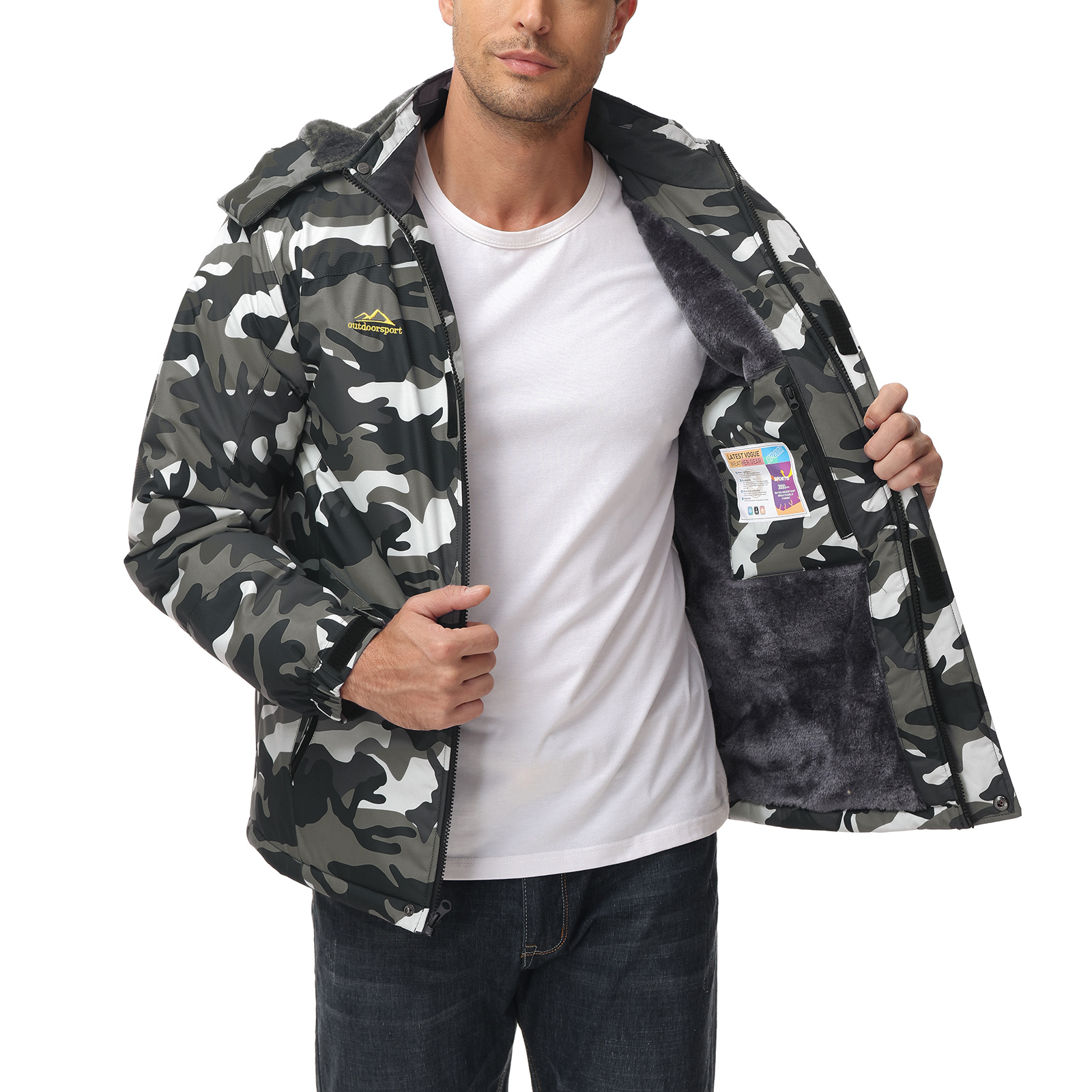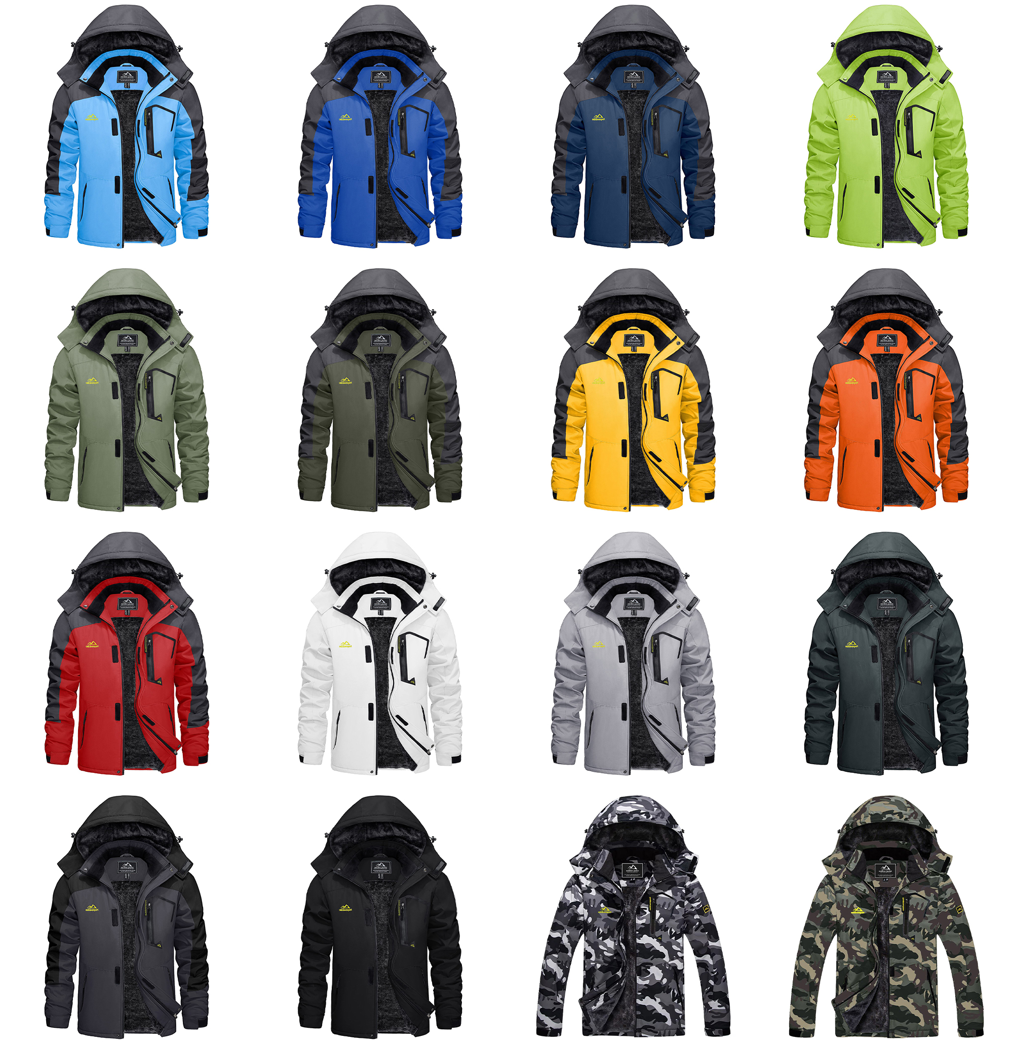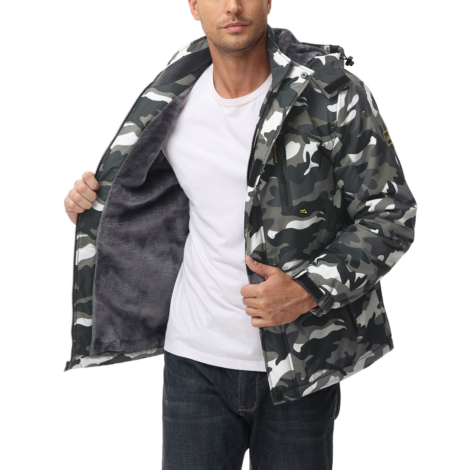 KEFITEVD Men's Winter Ski Jacket Waterproof Warm Thick Fleece Hiking Jackets Raincoats Snow Jacket Coats Windbreaker Man Parka