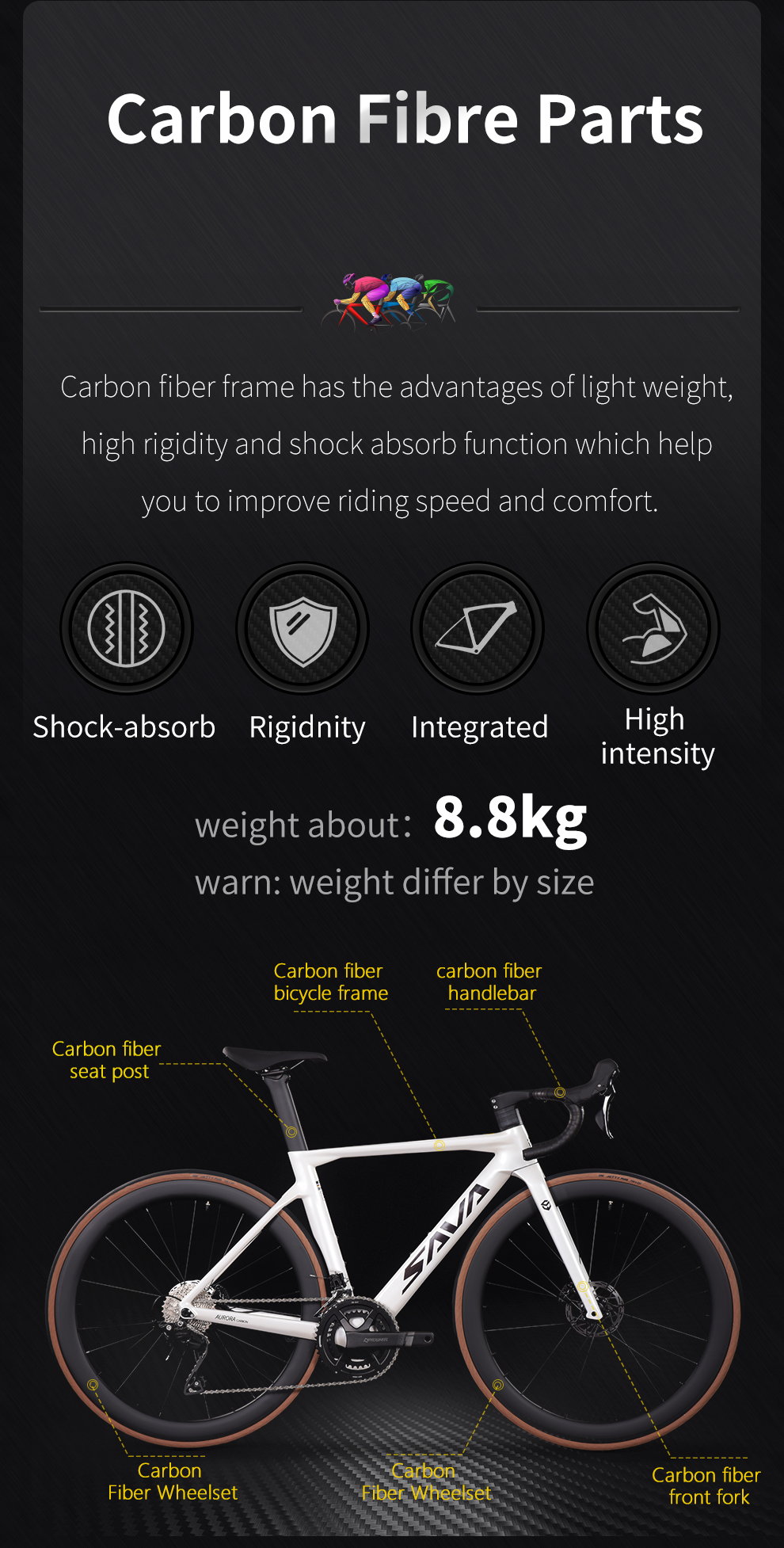SAVA Road Bike UCI Certified Carbon Fiber Frame Racing Bicycle Adult Cross Country Road Bike Belt R7120 24 Speed Kit arrived quickly and looks great!