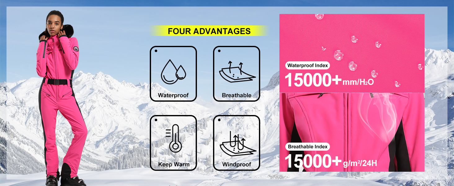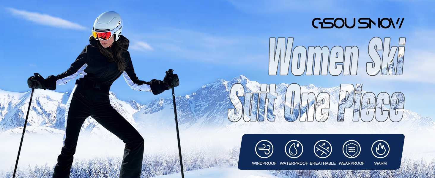 Gsou Women's Winter Snow Jumpsuit One Piece Ski Suit Thermal Thicken Waterproof Windproof Outdoor Sportswear for Snowboarding